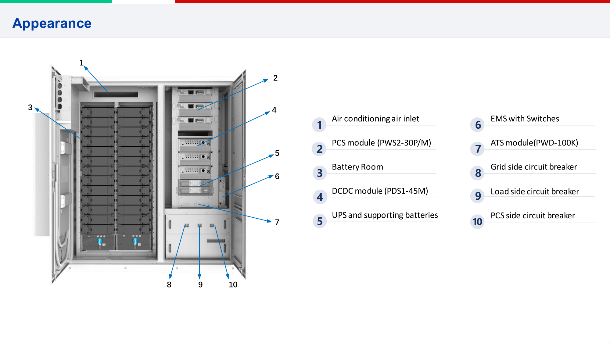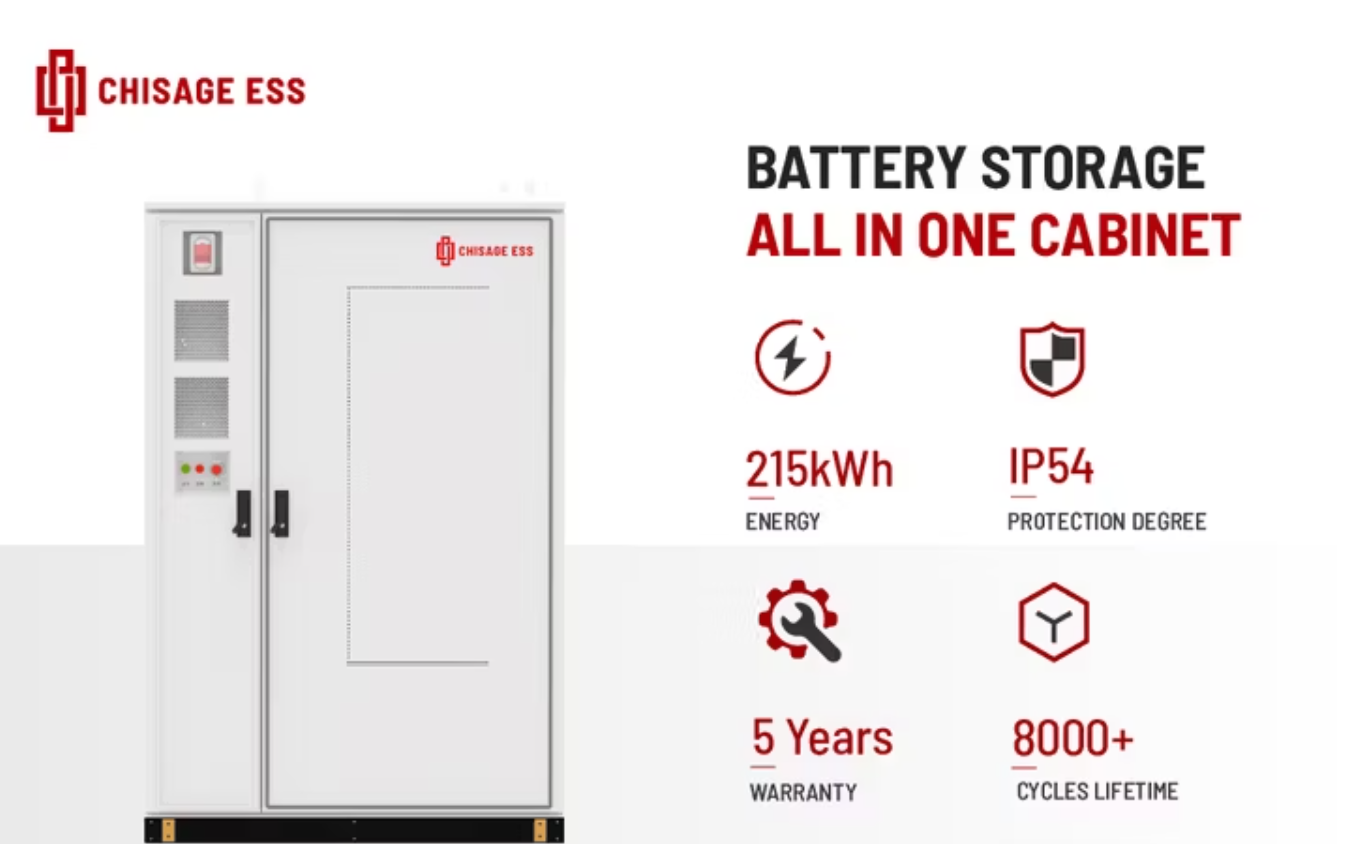 صورة (4): مثال لنظام تخزين شامل (All-in-One Energy Storage System) للتطبيقات التجارية، بقدرة خرج تبلغ 100 كيلو واط وبسعة تخزينية تبلغ 215 كيلو واط ساعة.