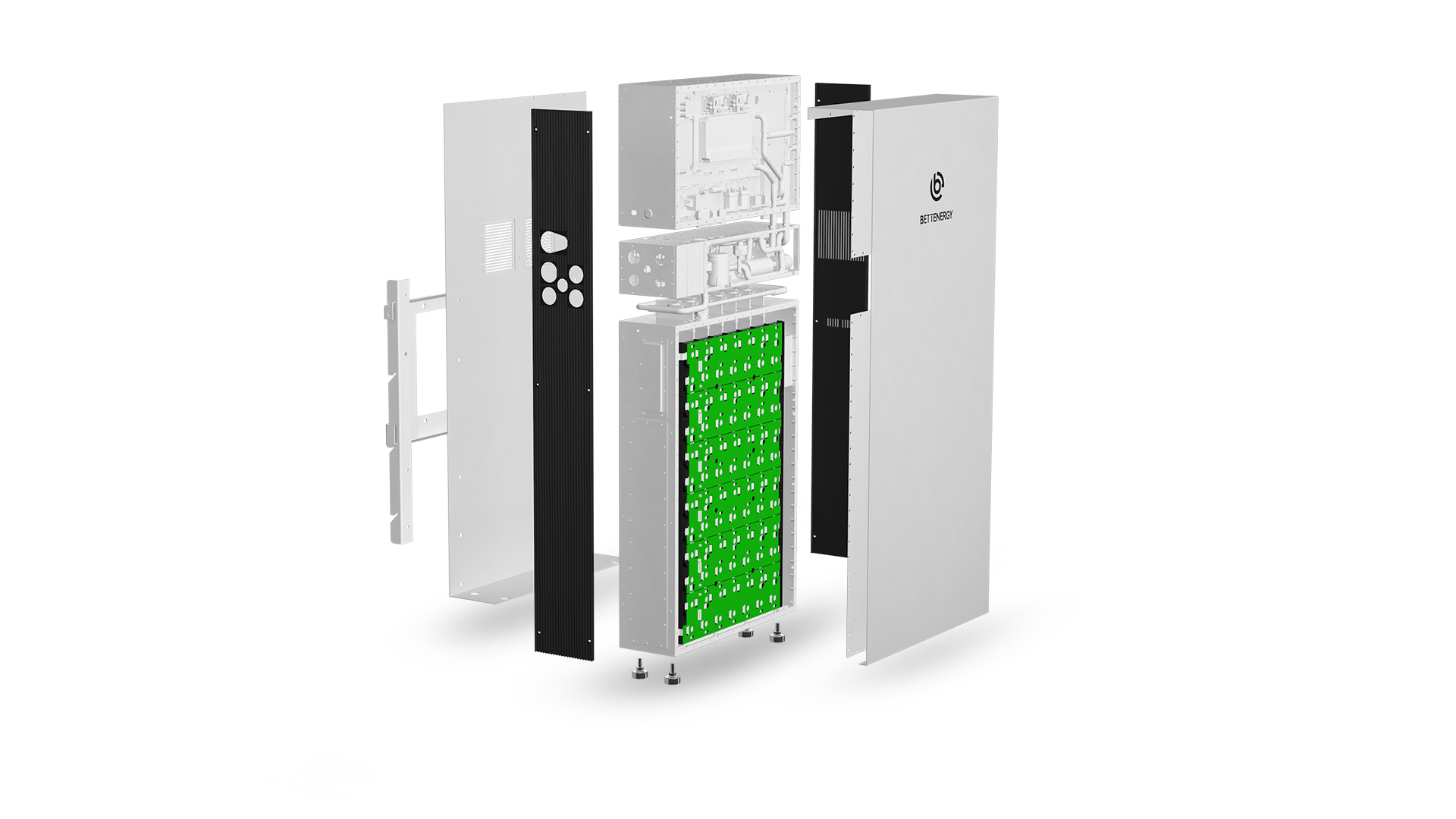صورة (1): توضيح لمكونات نظام تخزين شامل (All-in-One Energy Storage System) للتطبيقات المنزلية. مصدر الصورة: شركة Better Energy.