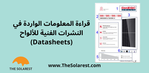 في هذا المقال توضيح وشرح للمعلومات التي تتضمنها النشرات الفنية للألواح الشمسية الكهروضوئية. الصفحة الأولى تتكون النشرات الفنية للألواح من صفحتين. وتحتوي الصفحة الأولى عادةً على: شعار الشركة المصنعة للألواح. اسم طراز الألواح المعروض في النشرة الفنية. صورة توضيحية للألواح. أبرز خصائص أو مميزات الألواح من وجهة نظر الشركة. معلومات …